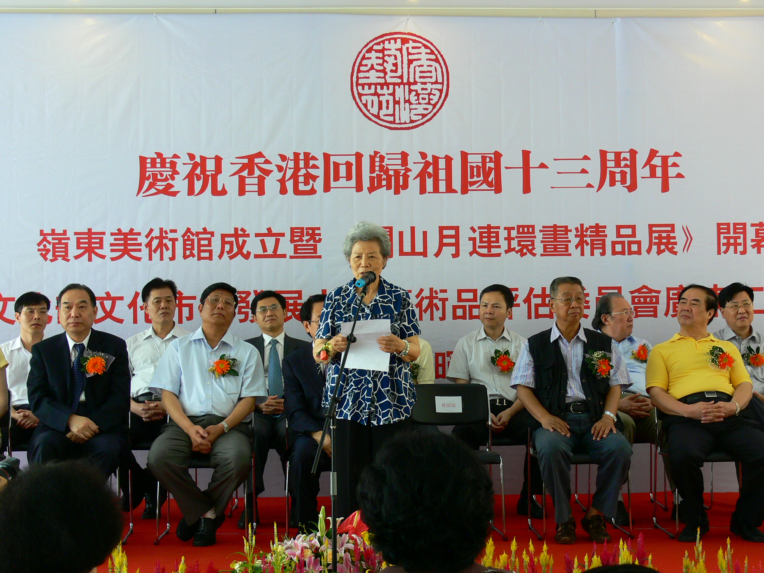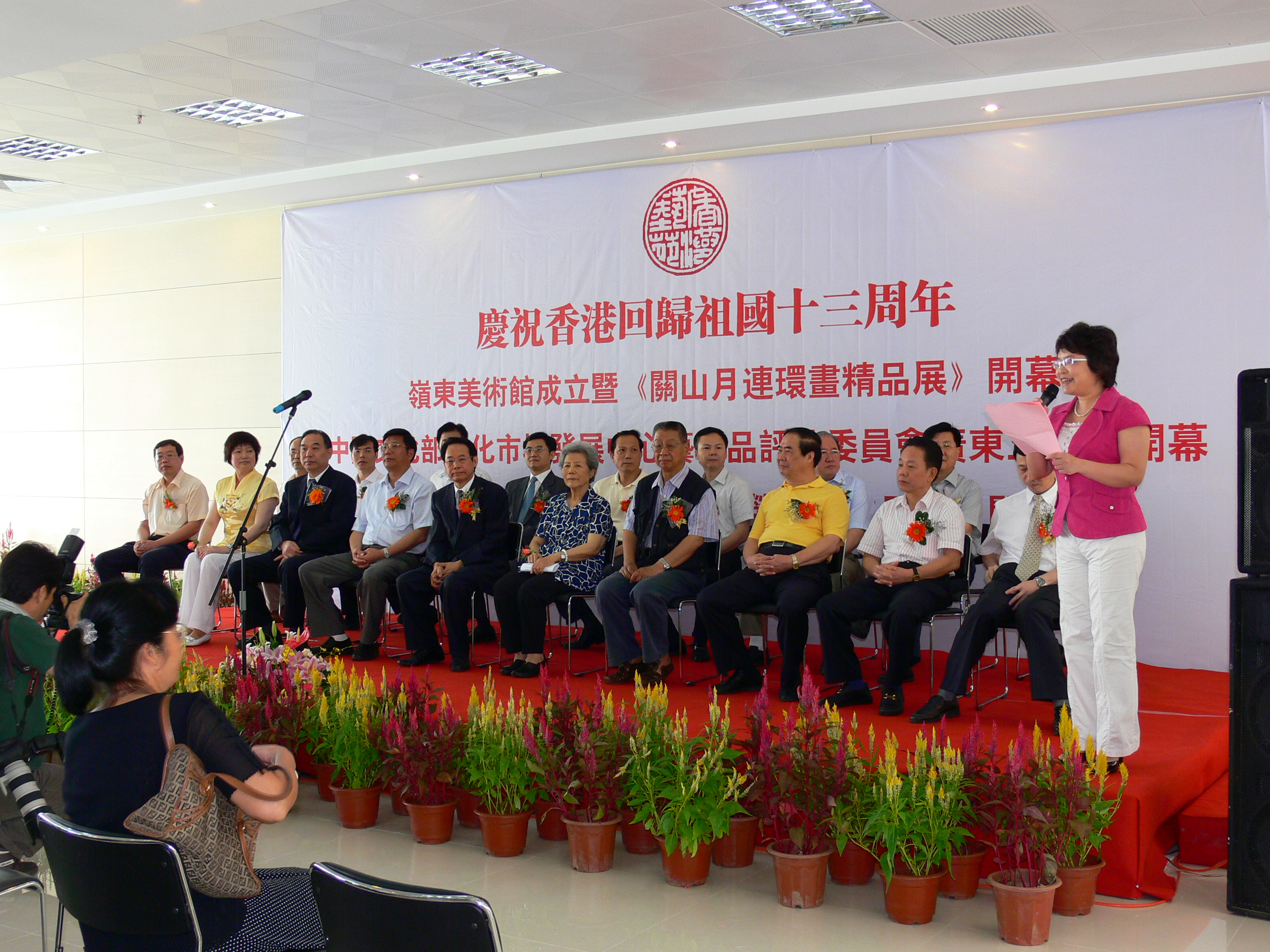 【本报讯】中国文化部文化市场发展中心艺术品评估委员会在汕头市艺苑文化广场设立广东工作站并于6月29日上午正式挂牌。同时举行岭东美术馆和萧晖荣艺术馆成立典礼及《关山月虾球传连环画精品展》和《萧晖荣艺术作品展》开幕式。莅临典礼的领导嘉宾有:原全国人大常委员、海峡两岸关系协会顾问林丽韫、汕头市政协主席罗仰鹏、海军政治部创作室主任、国家一级美术师张道兴将军、全国人大代表、江苏省国画院院长宋玉麟、汕头市政协副主席宋汉杰、汕头市政协副主席蔡婵英、汕头市统战部部长张泽华、汕头市政协副主席、市文联主席谢铿、文化部文化市场发展中心副主任胡月明、香港文汇报副总编辑徐可、文化部文化艺术品鉴定委员会委员、江苏省美术馆鉴定顾问萧平教授、傅抱石纪念馆名誉馆长、江苏、南京博物院艺术鉴定顾问傅二石、汕头特区晚报总编蔡谦先生、保监局汕头分局局长黄海晖先生、龙湖区区委书记李耿坚先生、原司法局局长陈锡镇先生、汕头市政协常委方木宏先生、文化部艺术评估委员会山东工作站主任 徐永彬先生、上海工作站主任 陈海波先生、浙江工作站主任柳献生先生、广东电视台珠江文化节目监制吴泳斌先生、中国美术家协会理事、香港艺苑集团董事长、岭东美术馆董事会主席萧晖荣教授等,汕头市各级领导、市文联、市美协、市书协、社会知名人士、艺术界、评估委员会各工作站代表等数百人参加开幕式。