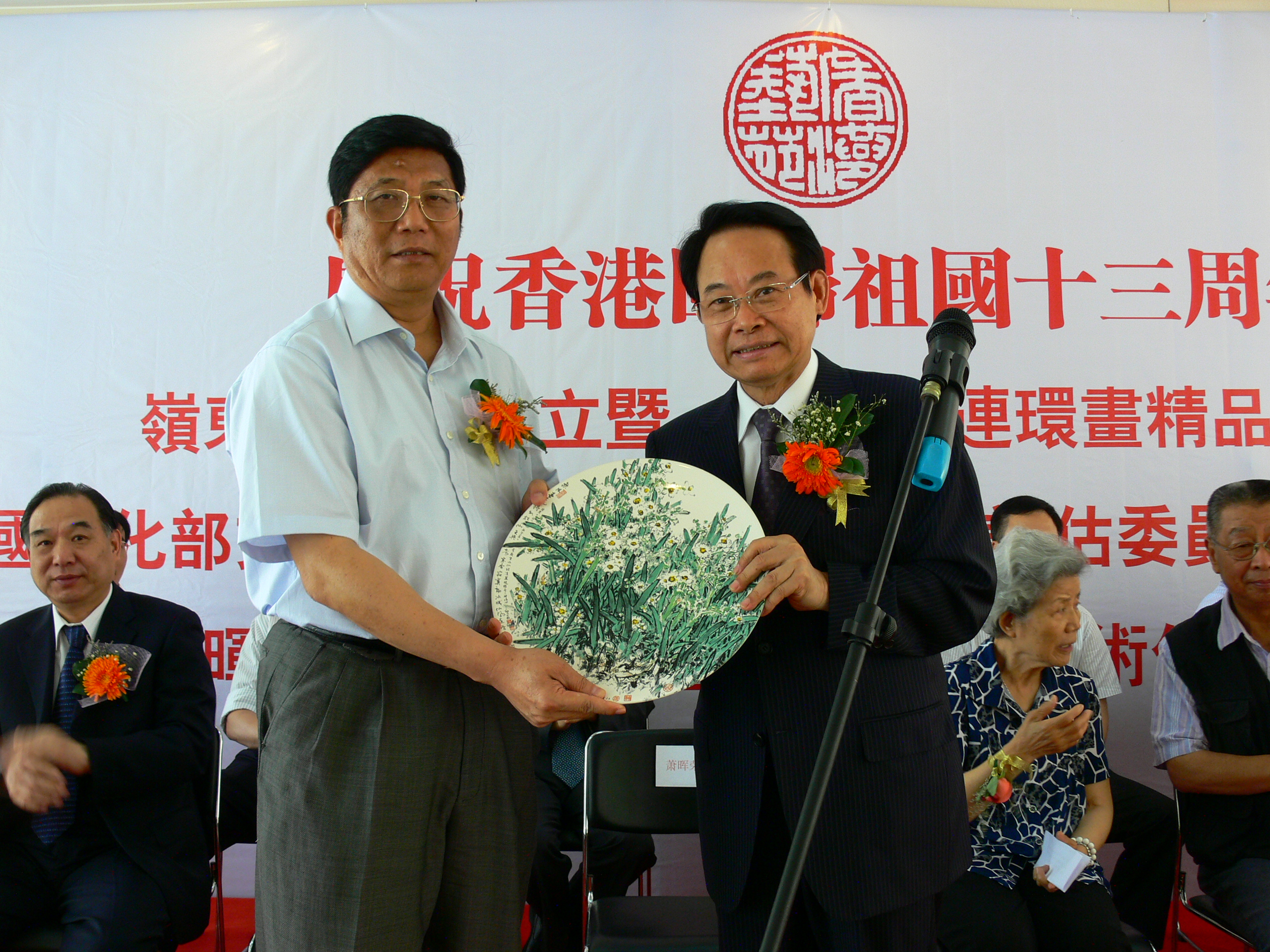 香港艺苑集团董事长、总裁萧晖荣教授向市政协主席、市委常委、常务副市长罗仰鹏赠送礼品