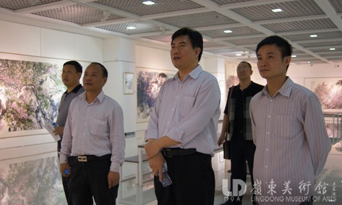 在艺苑文化广场副总经理、岭东美术馆副馆长、岭东雕塑院副院长萧培创的陪同下,参观了岭东美术馆、岭东雕塑院、香港艺苑中心画廊、萧晖荣艺术馆等,认真观看了正在展出的“庆祝汕头经济特区建立三十周年——萧晖荣艺术作品欣赏展”。杨立志副主席对萧晖荣教授的艺术造诣赞不绝口,并高度肯定了艺苑文化广场的工作对汕头文化建设的突出贡献。
